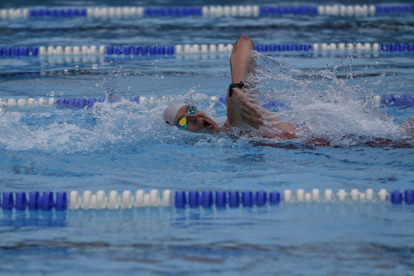 Unser Herrenteam war mit erfahrenen Sportlern am Start: Das Jugendtrio mit Jonah Lange, Ole Eschler und Till Altmann, welche parallel zu den Ligawettkämpfen auch am DTU-Jugendcup teilnehmen, Oliver Uldahl Bruun, der unser Team schon seit mehreren Jahren aus Dänemark unterstützt und Christian Pfeifer, einer der Athleten mit der längsten Bundesligaerfahrung im Verein. Am Samstag hatte Christian noch mit Magenproblemen zu kämpfen, fühlte sich glücklicherweise Sonntag früh wieder fit genug, um starten zu können. So kehrte auch beim Betreuer etwas Ruhe ein, der als Reserve vorgesehen war. Bei Regen und Lufttemperaturen im Bereich von 16 °C musste jeder für sich abwägen, ob das Einschwimmen sinnvoll ist oder nicht. Zumindest war das 50 m Becken auf 24 °C beheizt. Gestartet wurde im Abstand von einer Minute auf separaten Bahn nach dem Endergebnis aus der letzten Saison, wobei nach 8 min, also nach dem 8. gestarteten Team, die Bahnen doppelt belegt wurden. Nach Platz 12 in der vergangenen Saison starteten wir um 11:11Uhr auf Bahn 4. Pünktlich um 11:11Uhr waren allerdings auch die Weimarer Ingenieure, die 8 min eher gestartet waren, an der Wende. Von außen betrachtet sah es nach einem drüber und drunter aus. Das 10er Pack machte das Beste draus.