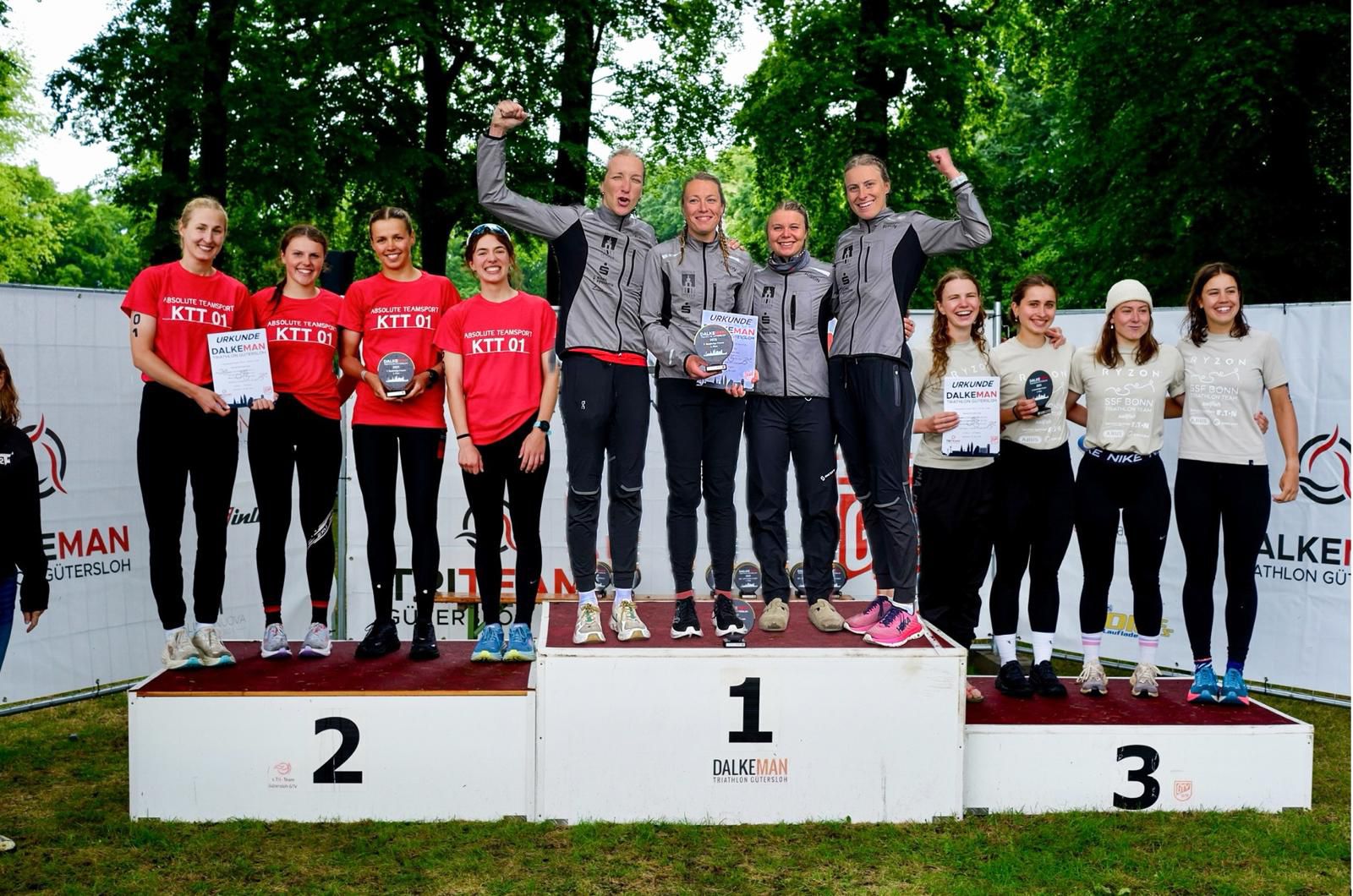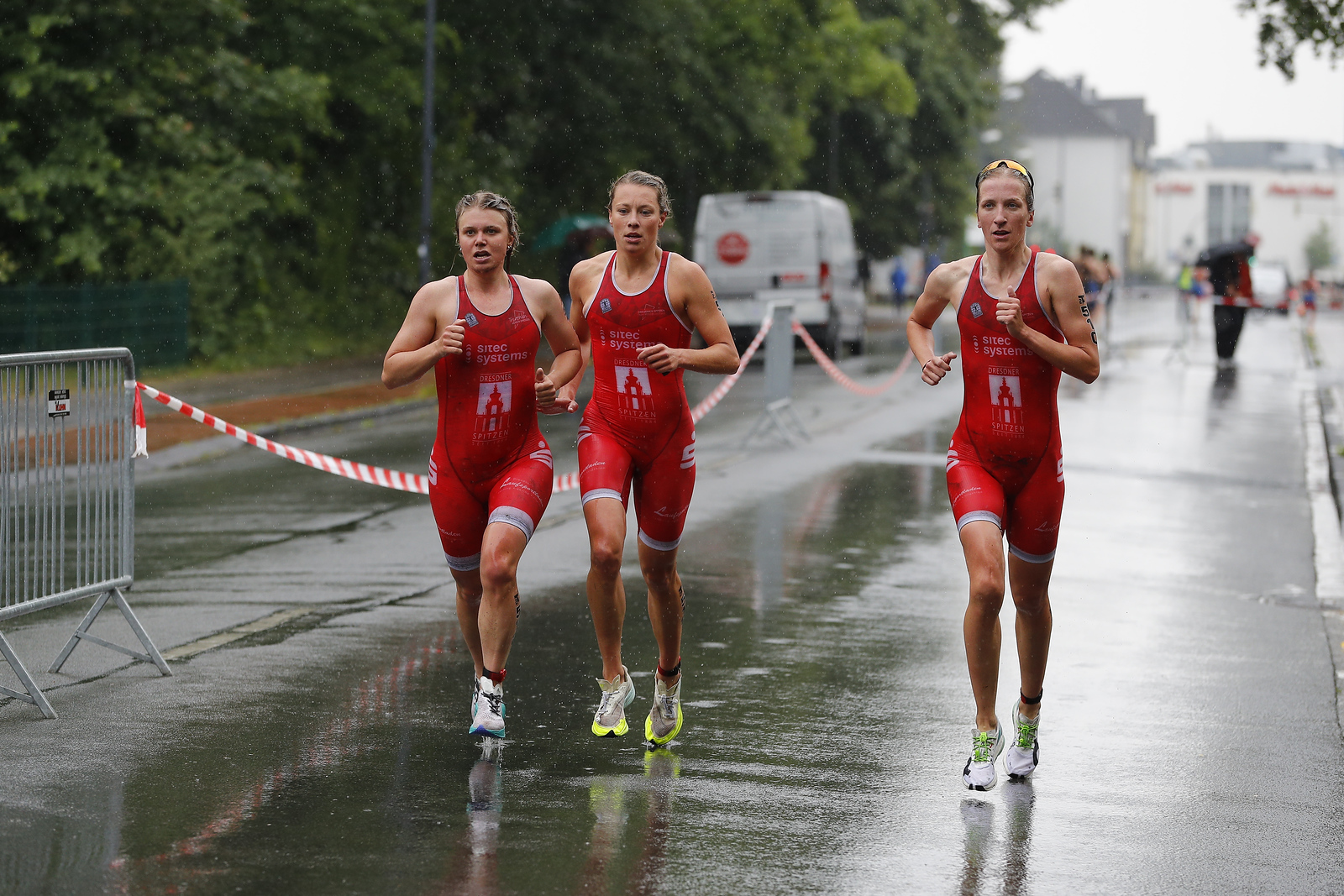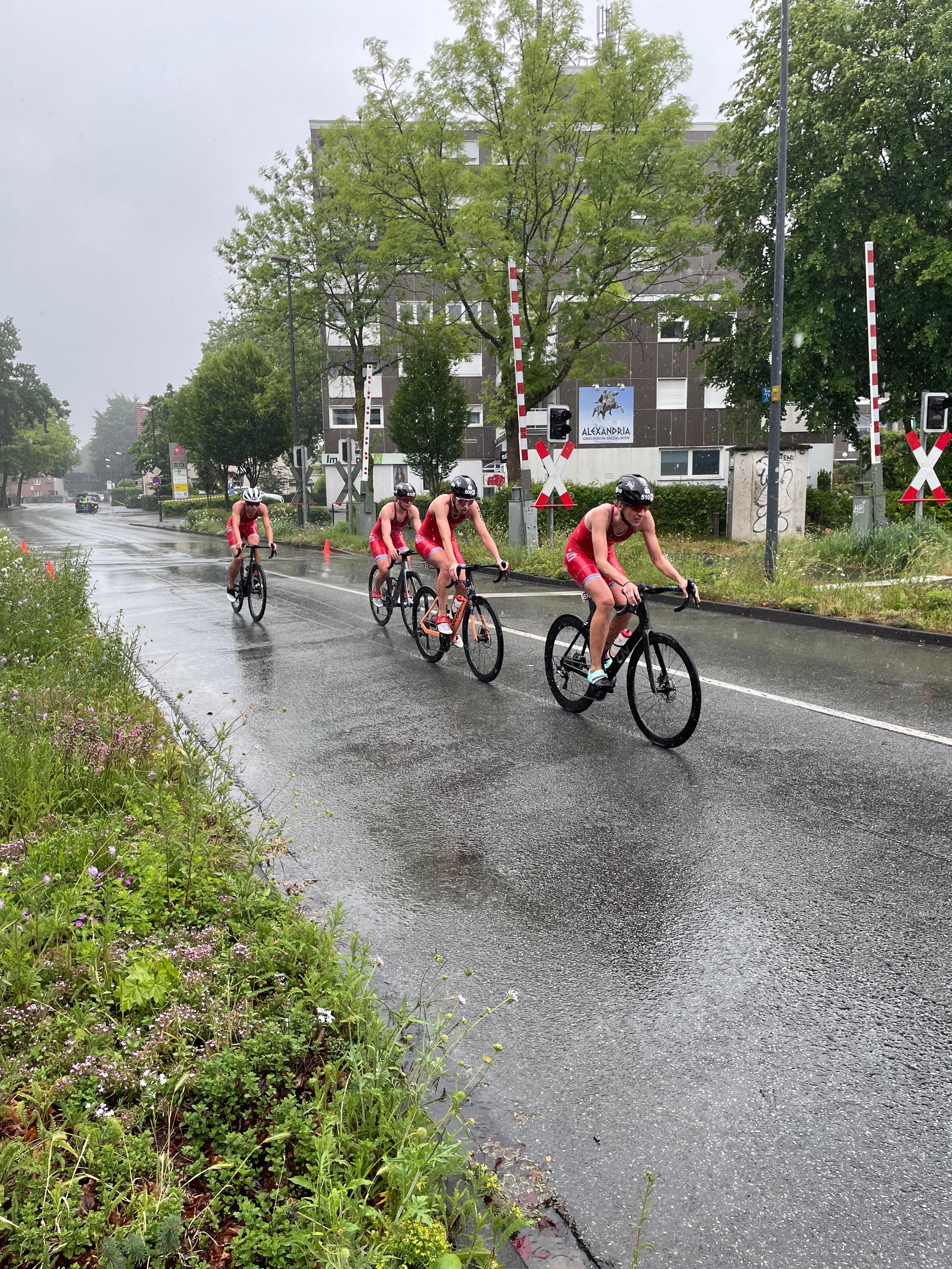 Und auch die Frauen konnten zu viert ohne eine zurückgelassene Athletin auf die Radstrecke. Es sollte die schnellste Radzeit unter den Teams werden.