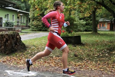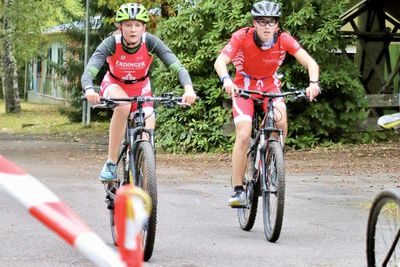 Nach dem Lauf ging es dann für alle auf‘s Rad - erst auf der Straße bergab und dann im Wald bergauf. Nachdem die Großen zwei Radrunden absolviert hatten, ging es noch mal eine Runde Laufen mit einem kräftezehrenden Berg am Ende und einigen harten Zielsprints.