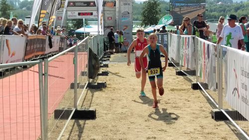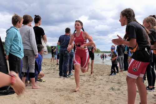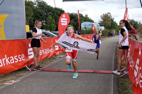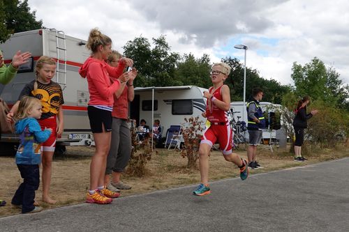 Beim Knappenman gab es dann kaum Irritationen. Nunmehr auf Rennrädern unterwegs, flutschte der Wettkampf dahin und nach dem Regen, den die Langstreckler am Vortag noch erleiden mussten, erlebten die Kinder angenehmes Triathlonwetter und eine tolle Kulisse.