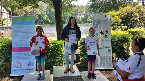 Am Mittwoch, den 07.06.2017, war es soweit: Ich sollte an meinem ersten Triathlon teilnehmen. Ich war ganz schön aufgeregt! Und es gab noch was Positives. Alle Teilnehmer waren von der Schule freigestellt. Das hat in meine Klasse ein ganz schönes Loch gerissen, weil ich zusammen mit Schul- und Sportfreunden Hannah, Finn und Stan in einer Mannschaft war.