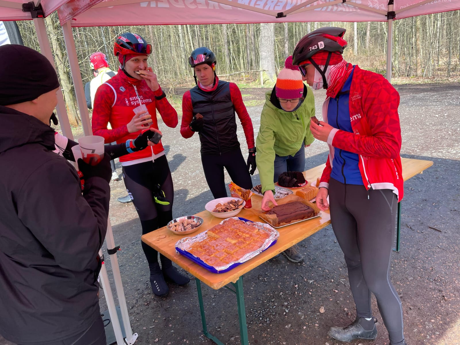 Relativ kalt, um die 4°C, aber strahlender Sonnenschein und trockene Straßen versprachen gute Bedingungen für einen gelungen Jahresauftakt. An der Märchenwiese angekommen strahlten die neuen Vereinspavillons und das Kuchenbuffet lockte schon mit vielen Köstlichkeiten - vielen Dank an die Kuchenspenderinnen.