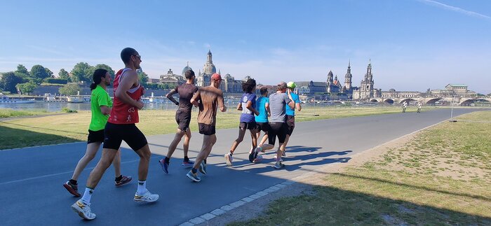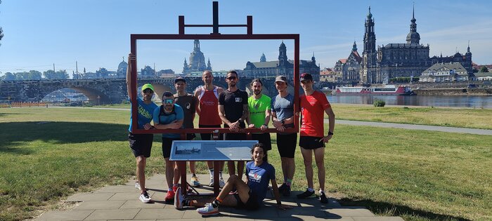 Aber, wo wird es eigentlich am letzten Juli-Sonntag 2022 lang gehen. Und wo zum Geier kann man in Dresden mit 2500 Athleten schwimmen gehen? Es gab also genug offene Fragen, um eine Streckenbesichtigung zu initiieren. Die Einladung richtete sich auch an vereinsexterne interessierte Ausdauersportler:innen und wurde dankbar angenommen, wie wir gleich noch sehen werden.