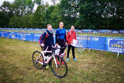 Die Kinderwettkämpfe wurden leider alle abgesagt. Altersbedingt konnte nur die Jugend in den Staffelwettkämpfen starten. So hatten sich Marleen und Lydia relativ schnell dazu entschieden, bei einer Sprintstaffel zu starten. Nur der dritte Mann bzw. die dritte Frau fehlte. Diesen Part übernahm - zum Glück - Maria Sorge, eine Triathletin aus Schwarzenberg. Nach kurzem Abstimmen war klar, dass Maria schwimmen sollte, Marleen Rad fahren und Lydia laufen würden. Am Wettkampftag ging es dann zeitig los. Halb sechs starteten wir in Dresden, neun Uhr fiel der Startschuss am Dreiweiberner See.