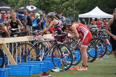 Voller Vorfreude ging es am Freitag bereits zur Länderparade und Nudelparty nach Grimma. Am nächsten Morgen mussten wir recht früh raus, aber was tut man nicht alles für seinen Sport. Eine Besonderheit war für uns, dass wir das erste Mal in zwei Wechselzonen einchecken mussten. In der Ersten lief alles problemlos, aber in der Zweiten gab es ein Problem mit Claras Fahrrad. Das Sperren von Gängen ist nämlich nicht zugelassen und deswegen sollte Clara nicht gewertet werden. Das war natürlich eine unfassbare Enttäuschung, da die Teilnahme an der DM Claras Ziel gewesen ist.
