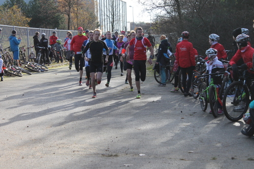 Die Nachwuchssportler traten dieses Jahr erstmals ebenfalls in Zweierteams an. Gestartet wurden sie gemeinsam mit den Großen, so dass Wartezeiten vermieden bzw. reduziert wurden. Allerdings mussten die Jungspunte nur einmal laufen und auch nur eine statt zwei Radrunden absolvieren. Die unbekümmerte Art der Jugend, mit der sie den Parcours angingen, war toll anzusehen. Kein Zögern, kein Zaudern. Immer feste drauf auf die Pedale und rum die Kurbel und den Lenker!