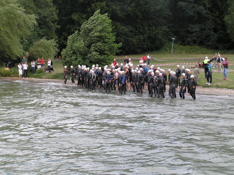 Am Samstag starteten zunächst die Damen auf der Sprintstrecke um 13:30. Das Schwimmen war sehr wellig, da ein sehr starker Wind wehte. Das Schwimmen wurde auf einer 750m Runde absolviert. Danach ging es in den etwas unübersichtlichen Wechselgarten, der vom Organisator etwas verwirrend für die Athleten aufgestellt wurde. Die 20 Km Radstrecke begann mit einem 1,5 Km langen 6% Anstieg, und war sehr schwer gleich nach dem Schwimmen zu fahren. Der sich im Schwimmen angedeutete Wind, wehte auch auf der Radstrecke, die doch etwas hügelig war, was auf der Landkarte nicht unbedingt zu vermuten war. Die abschliessende Laufstrecke ging über einen Wald- und Wiesenweg, der einen steilen 300m Berg Anstieg beinhaltete. Unsere Mädels kamen mit diesen schwierigen Bedingunen am besten zurecht, und belegten mit der Mannschaft den ersten Platz, A. Finger (2), D. Haase (4) und J. Hänsel auf (12) waren für diesen ersten Platz verantwortlich.