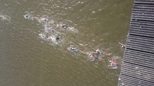 Um 06:00 Uhr am Sonntagmorgen klingelte das Handy. 6:30 Uhr ein kleines Frühstück, soweit mein Magen mitspielte. Gegen 7:15 Uhr dann zum Check in. Ich musste die gesamte Wechselzone nach vorn laufen, da dort die Starter der Deutschen Meisterschaften standen.Ca. 400 Meter feinstes Kopfsteinpflaster sollten dann nach dem Schwimmen mit dem Rad in der Hand zurückgelegt werden.
