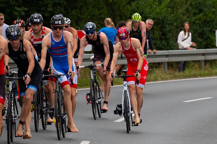 Nach ihm folgte Christian, der mit seiner Schwimmleistung schon fast an Simeons Radgruppe dran war, jedoch leider den Anschluss nicht halten konnte und sich zurückfallen ließ. In der darauffolgenden Radgruppe war Leander. In zwei weiteren Gruppen kurz dahinter folgten Finn und Björn. Es wurden zwei Runden mit jeweils drei Wenden gefahren. Der Rundkurs war relativ flach und beinhaltete zwei kleinere Anstiege.