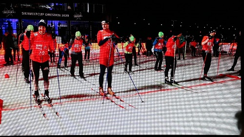 Da wir die große Bühne lieben, am besten (im Rahmenprogramm) bei einem Skilanglaufweltcup. Zum Glück findet solch einer seit drei Jahren auch direkt in Dresden statt. Seit zwei Jahren dürfen sich auch Profihobbyathleten daran versuchen den Mount Dresden zu erklimmen. In malerischer Atmosphäre der Altstadtkulisse mit digitaler Bandenwerbung gleich eines Fußballstadions dreht man seine Runden an der Elbe. Dank unseres großzügigen Sponsors Dresdner Spitzen waren wir (Marco, Max, Andy (Marco´s Bruder) und Grahlo) auch mitten drin.