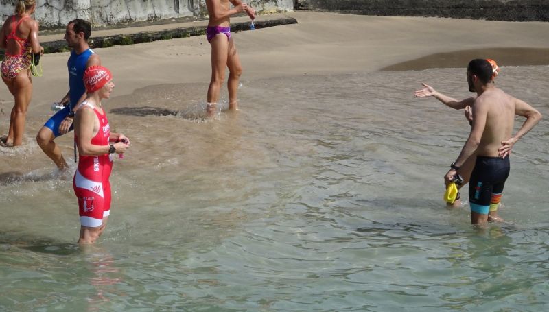 Vor dem Schwimmen hatte ich als schlechter Schwimmer Respekt. Die Erinnerung an den IM Klagenfurt 2012, bei Neoprenverbot eine sehr, sehr lange Zeit geschwommen zu sein – war immer im Hintergrund anwesend. Werde ich die Trainingszeiten aus den Wochen zuvor auch im Freiwasser erreichen?