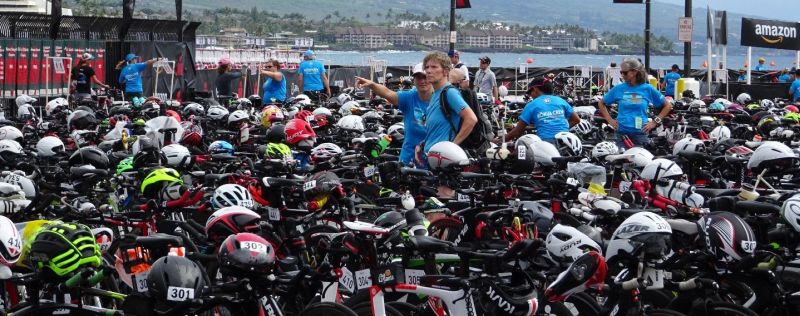 Das Einchecken des Rades am Vortag des Rennens wurde bei jedem Athleten zelebriert. Jeder Teilnehmer bekam eine Begleitung zur Seite, wobei nicht nur das Rad und die zwei Wettkampfbeutel richtig abgestellt wurden…Fragen beantwortet wurden, sondern auch alle wichtigen Wege gemeinsam abgelaufen wurden.