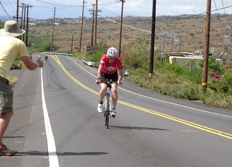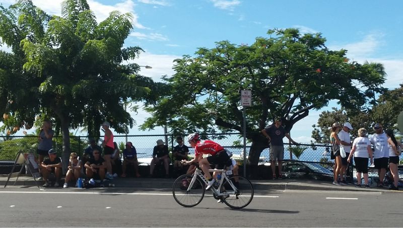 Kein Läufer vor mir, bog ich in Kona angekommen, auch mal falsch ab…“folge den roten Kegeln“…Ein Polizist machte mich darauf aufmerksam und der korpulente Mann war sich zu schade, mit mir die Straße wieder hinauf zu joggen und mir den richten Weg zu weisen.