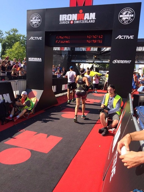Bis hierhin lief alles relativ reibungslos und ohne größere Probleme – bis auf eine Ausnahme: mein Magen/Bauch machte mir schon vom Schwimmen an mit kleineren bis mittelschweren Krämpfen Probleme. Meine Hoffnung, dass sie mit dem Verlassen der Aeroposition verschwinden, erfüllte sich leider nicht. So wurde die erste von 4 Laufrunden leider schon teilweise zum Spaziergang mit dem Versuch irgendwie eine Besserung zu erzielen. Ein negativer Nebeneffekt war zudem, dass ich in der ersten Runde kaum bzw. keine Energie aufgenommen habe. So wandelte sich das Bauchproblem schließlich in ein Energieproblem, denn die Krämpfe lösten sich zum Glück irgendwann. Somit war zumindest ein normales Laufen möglich, wenn auch nicht in der Geschwindigkeit wie geplant. Marcos und Hendriks Anfeuerungsrufe und ein anschließender Blick auf die Uhr wandelten schließlich auch meine Gefühlslage von „Hauptsache durchkommen“ in „Mensch, das könnte noch eine gute Zeit werden“. Ich musste nur im angeschlagenen „Tempo“ durchlaufen. Mit diesem Mantra gingen auch die restlichen 3 Runden durch die Züricher Innenstadt noch rum.