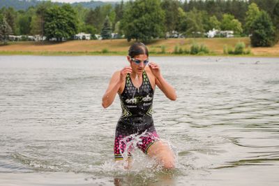 Und So begaben sich die Wettkämpfer nach ganz verschiedenen warm-up-Distanzen an Land oder im Wasser, wie gewohnt 2 Mal ins Rennen. Nicht das erste Mal, aber bisher seltener wurden die Rennen wie folgt durchgeführt: Lauf: 1,3km - Schwimmen: 500m - Lauf: 1,3km.