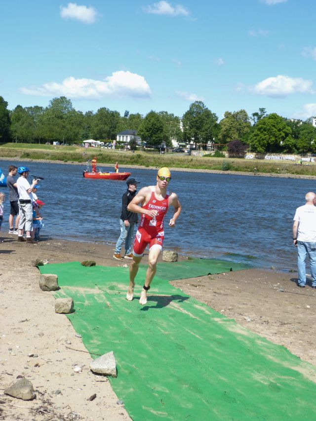 Das Schwimmen führte uns von der Waldschlößchenbrücke 800m flussabwärts. Anschließend ging es 20km auf eine Wendepunktstrecke mit dem Rad, um dann die letzten 6,5km am Elbufer zu Fuß zu bestreiten. Und was soll ich sagen, das Training zahlt sich aus! Was dabei am heutigen Tag für mich herausgesprungen ist, lest ihr am besten selbst.