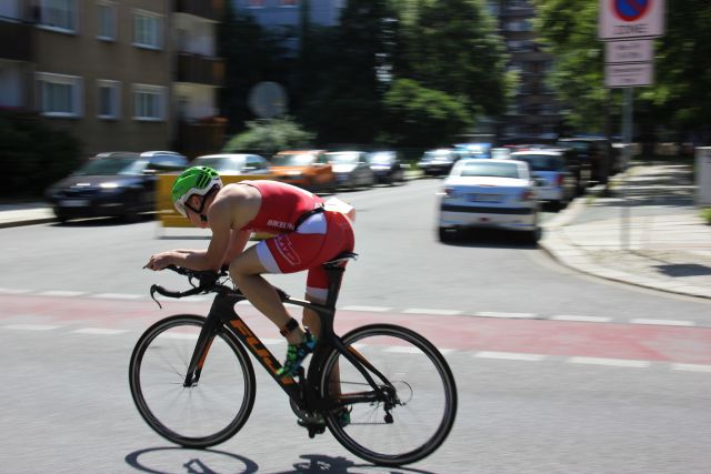 Fix gewechselt und ab aufs Rad. Nach dem Schwimmen war das Ziel recht klar: So schnell es geht vor auf Position Eins fahren. Die Beine fühlten sich gut an und ich machte von Beginn an Druck. Nach ca. 4km war es dann soweit, zum ersten Mal bei einem Triathlon überhaupt konnte ich „Führungsluft“ schnuppern. Zugleich war es ein ordentlicher Motivationsschub diese Position nicht mehr herzugeben. Bis zum Ende des Radfahrens konnte ich den Vorsprung weiter ausbauen und mit einem guten Polster in den finalen Lauf gehen.