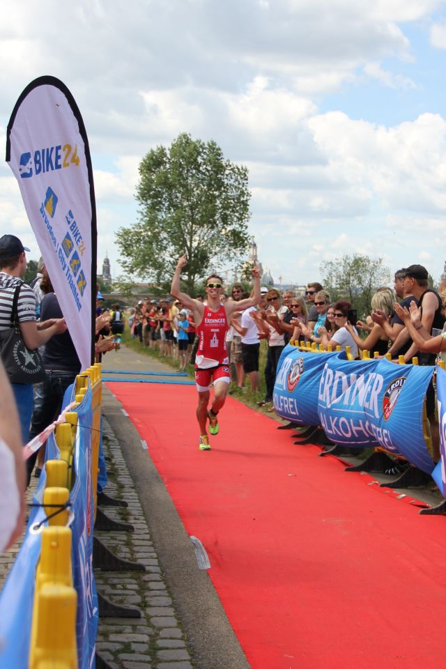 Dann war der Moment gekommen. Strahlend und mit erhobenen Armen genoss ich die letzten Meter zu meinem ersten Gesamtsieg bei einem Triathlon. Auch jetzt bin ich überglücklich, dass alles so gut geklappt hat und ich das Rennen von Beginn an mitgestalten konnte. An dieser Stelle auch noch einmal einen großen Dank an Alle, die an der Strecke waren und mich fleißig angefeuert haben.