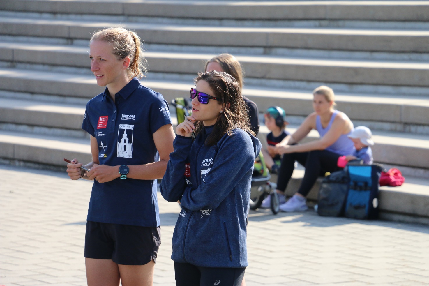 Ergänzung: die Männer des Dresdner Spitzen Triathlon Teams absolvierten ihr Rennen für die 2. Triathlon-Bundesliga zeitgleich. Die Starter waren: Björn Scheibner, Otto Junghannß, Marco Kühne und Robert Kuhne. Unterstützt wurden sie von Sophies Bruder Simeon Schumann. Beim Schwimmen schlug Max in 10:52 min als Erster des Teams an, gefolgt von Björn (11:25 min), Marco (12:05 min), Robert (12:44 min) und Otto (13:40 min). Das Laufen blieb bis zuletzt spannend. Am Ende setzte sich Björn in einer Zeit von 16:56 min durch. Otto benötigte 17:22 min, Max 17:40 min, Marco 17:55 und Robert 19:46 min für die 5000 Meter. Auch Simeon zeigte sehr starke Leistungen in beiden Disziplinen. Trotz der guten Leistungen, blieb im Endergebnis der Teamwertung „nur“ ein 15. Platz. Die beste Einzelplatzierung belegte Björn auf dem 44. Platz.