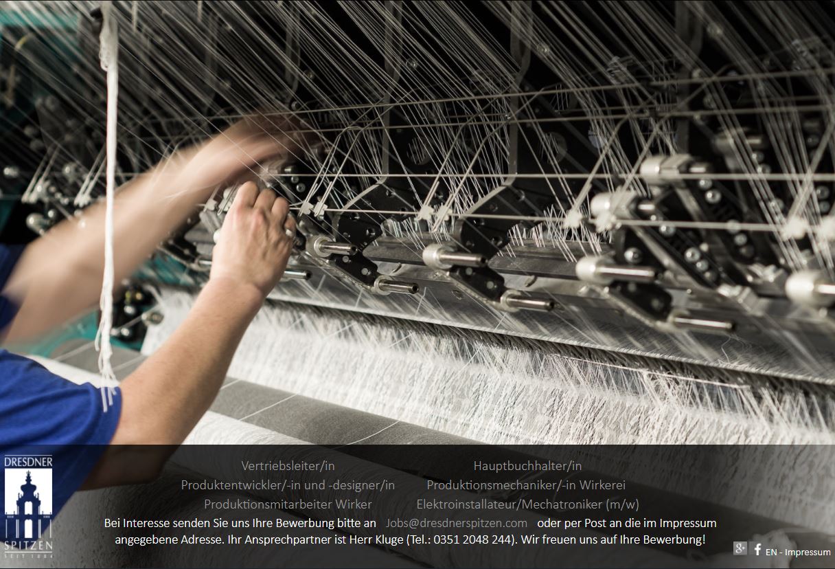 Unser Sponsor die Dresdner Gardinen- und Spitzenmanufaktur hat Jobs im Angebot.