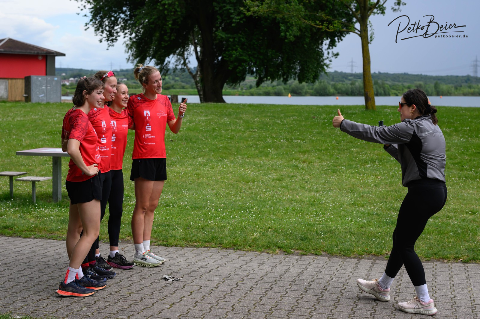 Perfekt betreut durch Sina, die diverse Male von anderen Starter*innen für Lena gehalten wurde und mit Petko hinter der Kamera, ging es dann zur üblichen Vorbelastung an den Hardtsee. Die über den Winter eingerostete Routine wurde schnell wiedergefunden, sodass wir Schwimmstarts übten und vermutlich das ausführlichste Lauf-ABC meiner letzten Wochen abfackelten. Wir hatten unseren Spaß. Für Naja stand ihr erstes Rennen in der 1. Bundesliga an. Wir versuchten ihr alle Abläufe zu zeigen und Sicherheit zu geben, doch man hatte das Gefühl, als hätte sie das gar nicht nötig. Völlig cool und fast perfekt organisiert, stand sie am Renntag an der Startline. Wieso nur fast? – Naja, (hahah) dreimal dürft ihr raten, wer seine Schwimmbrille in der Unterkunft gelassen hat.