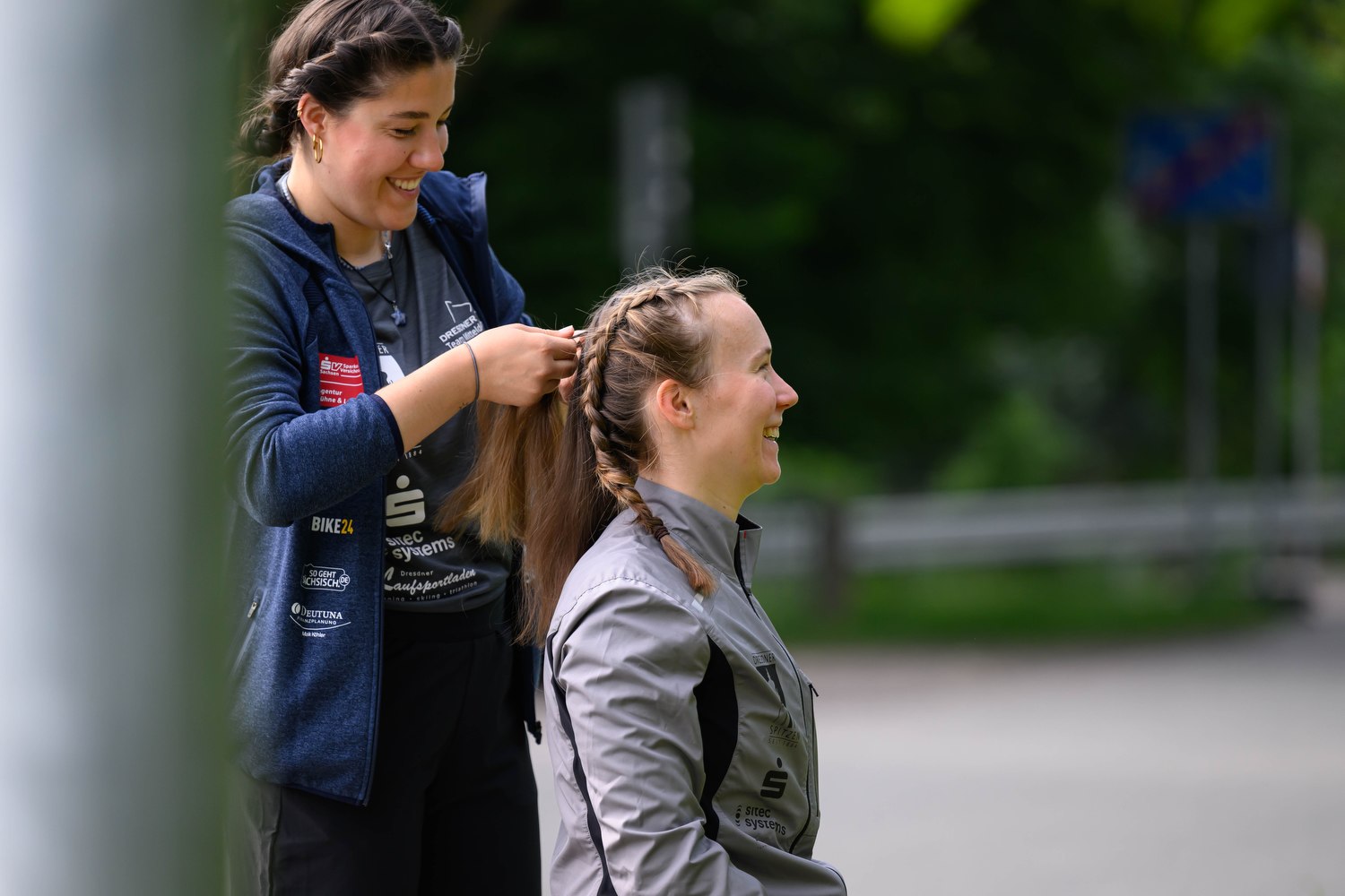 Auch wenn ich das Paar-Format vom letzten Jahr ein wenig vermisst habe, war das Rennen ein super Auftakt, um zu sehen, wo man steht und festzustellen, dass man noch weiß, wie Triathlon geht. Über den Winter habe ich manchmal das Gefühl alle rennspezifischen Skills verlernt zu haben, aber dann kommen sie sofort wieder, wenn man die Startunterlagen bekommt. Dabei ist es spannend zu sehen, dass jede ihre eigenen kleinen Ticks und Tricks hat, um in den Wettkampfmodus zu kommen und sich bestens vorbereitet zu fühlen. Ich für meinen Teil setze auf eine gute Stimmung im Team, mentale Vorbereitung und die Kraft der Wettkampf-Zöpfe, die wir uns vorher immer gegenseitig flechten (aka mir geflochten werden).