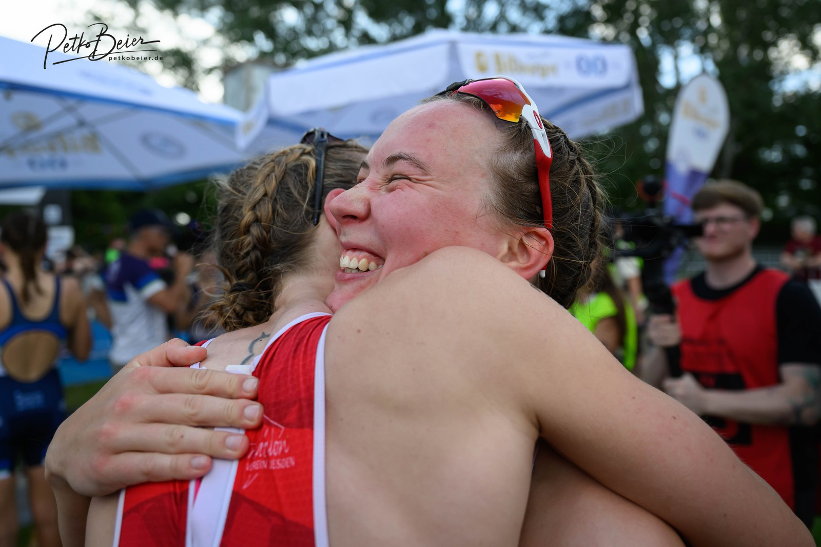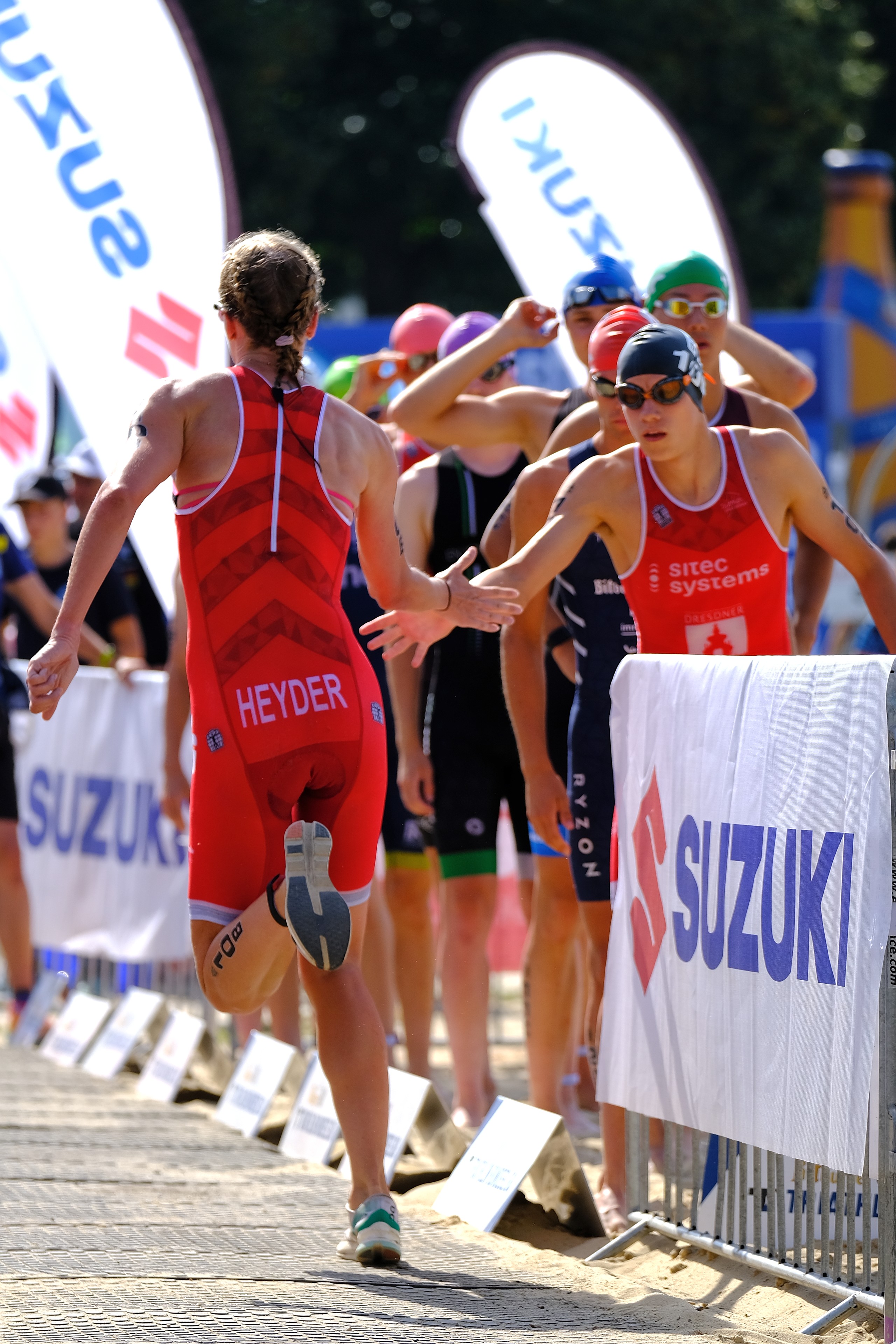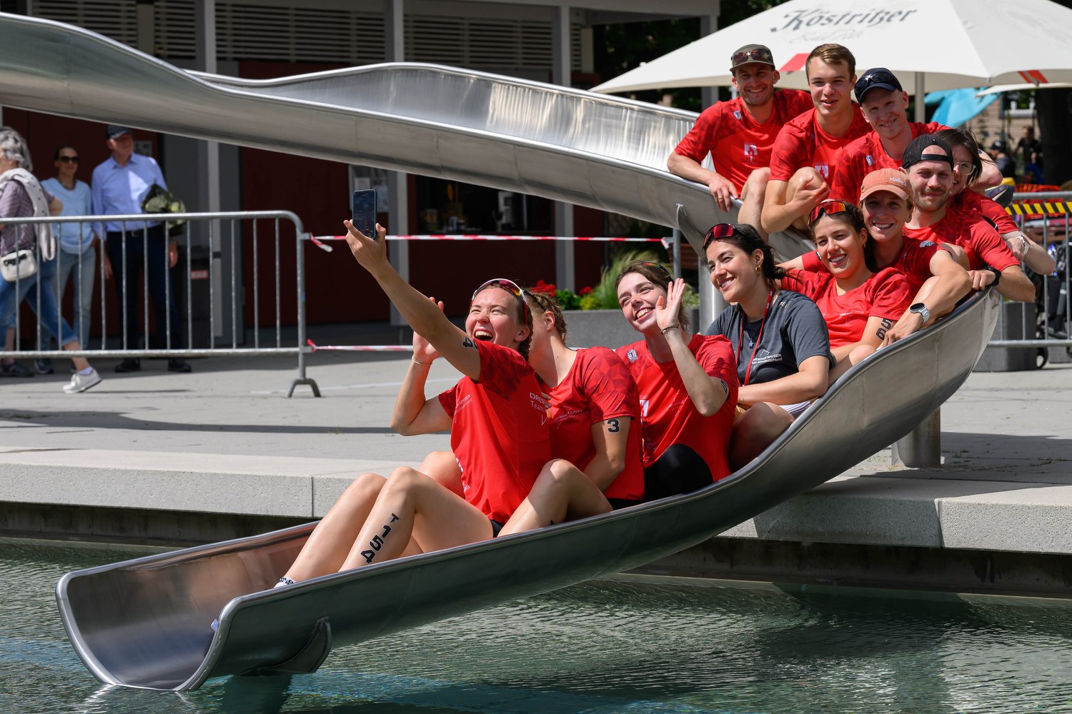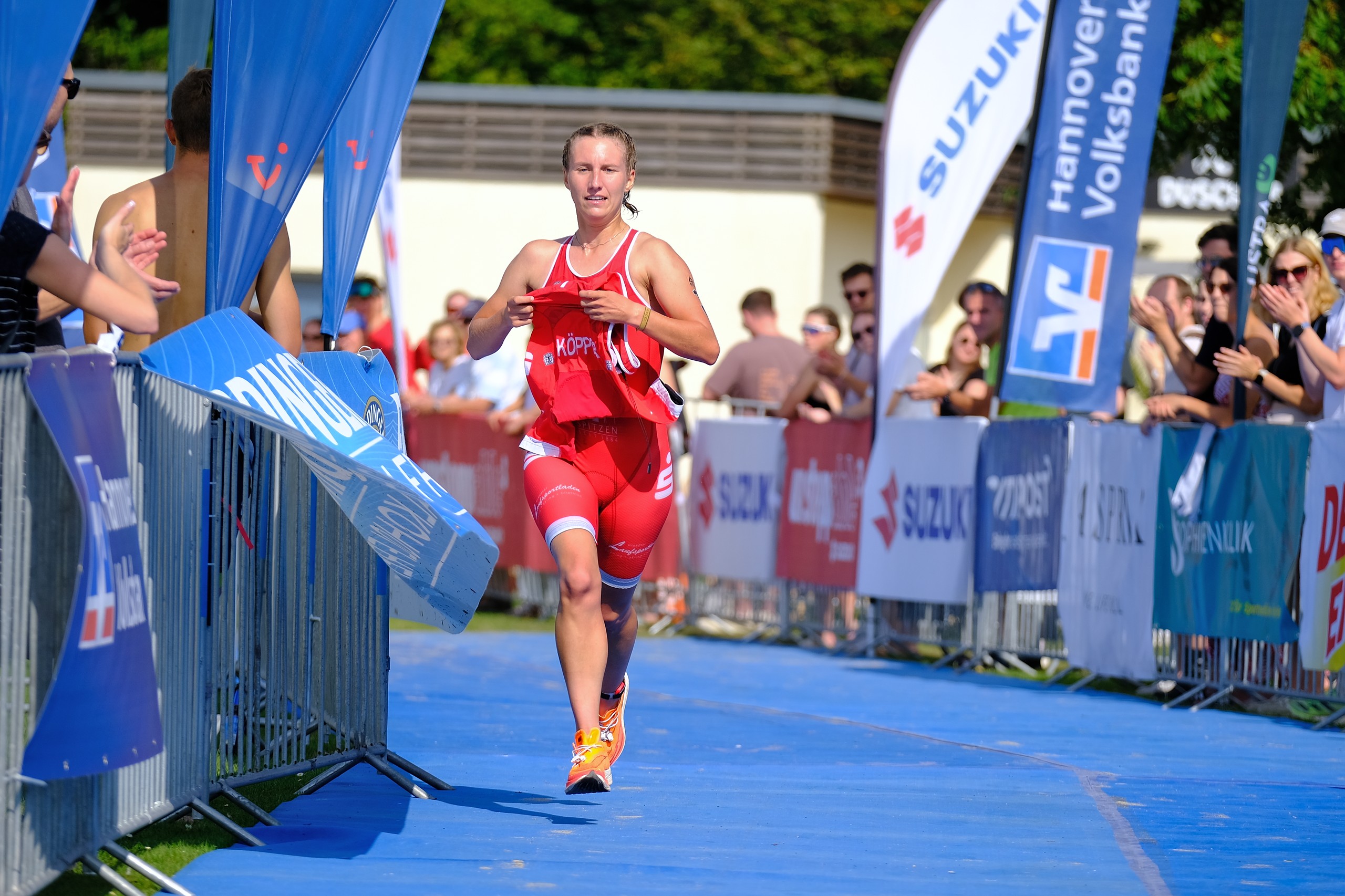 Die Team-Mixed Relay mit Kjell, Anna, Ole und Lina lief sehr gut und hat allen Beteiligten Spaß gemacht. Das Format war von Anfang bis Ende spannend und superschnell, sodass man als Zuschauer ordentlich zu laufen hatte, wenn man alles mitbekommen wollte. Ich hielt dagegen die Stellung an der Übergabe und Ziellinie. Ich war kurz verwirrt als Lina mit etwas Roten in der Hand ins Ziel einlief. Ich hatte zunächst die Sorge, dass irgendwas schiefgelaufen ist und wir jeden Moment disqualifiziert werden könnten. Erst einige Sekunden später hab ich kapiert, dass die Mädels meinen Einteiler von der Leine geklaut haben und Lina nun damit durchs Ziel lief. Das war eine sehr süße Geste, die mir wirklich viel bedeutet. <3