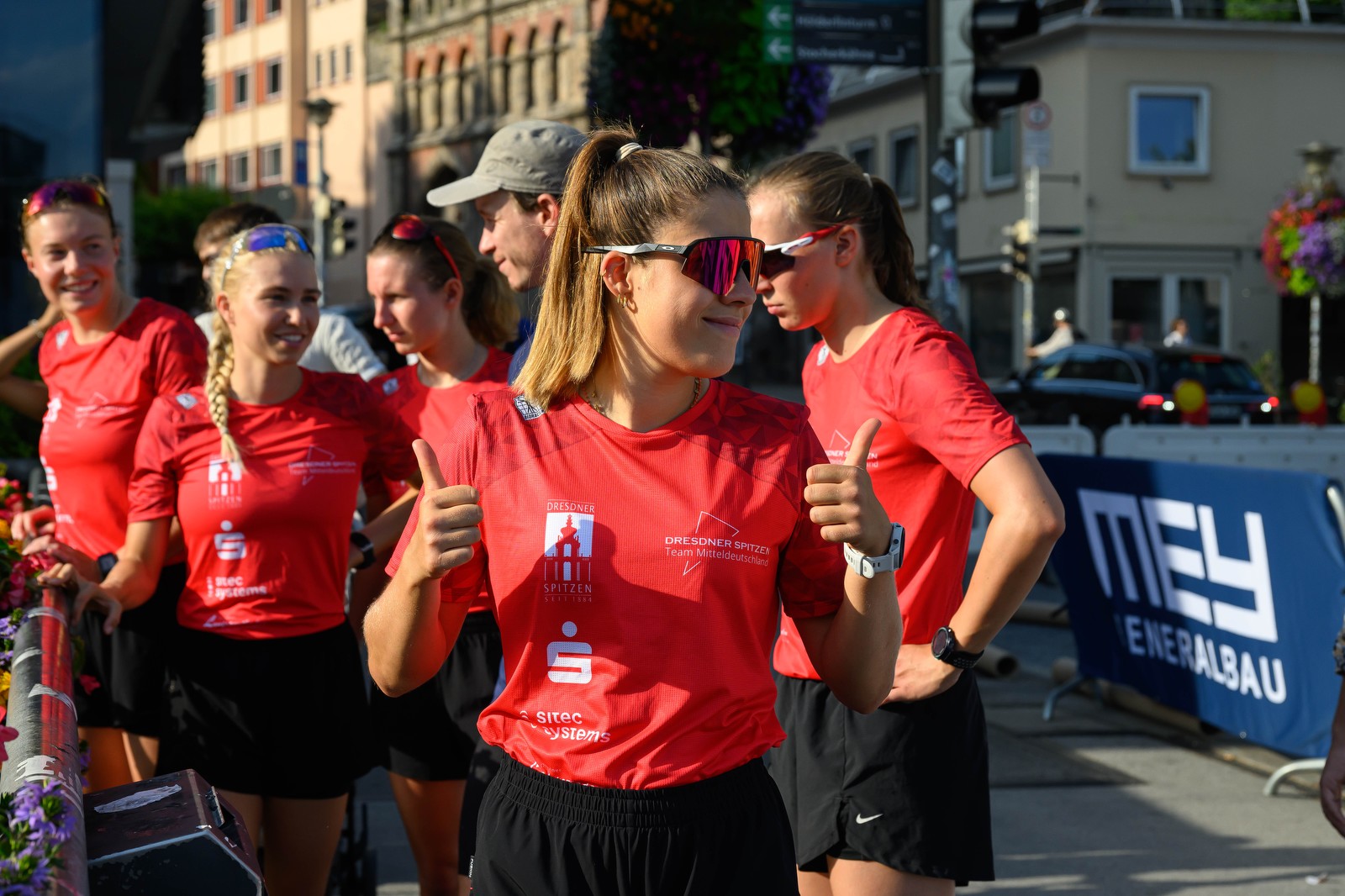 Nach der kürzesten Anreise ever landeten Lena und ich in Weimar, wo wir die Mädels (Pauline, Sophie S., Anna) und das Männerteam trafen. Neben unseren Dresdener Jungs, wünschten wir auch dem Team Weimarer Ingenieure das Beste für ihr Heimrennen. Das Staffelformat, indem die Athlet*innen hintereinander ins Rennen gingen, war super attraktiv für Zuschauer, schnell und machte auch als Sportlerin unheimlich viel Spaß. Mit vielen netten Helfer*innen an der Strecke, toller Moderation, funktionierenden Livestream und generell professionell, sportlerfreundlichen Aufmachung machte der Kulturstadttriathlon sehr viel richtig. Ich mochte es, für das Team alles zu geben und auf zweiter Startposition möglichst weit vorne auf Pauline zu übergeben. Ehrlich gesagt, hatte ich uns für die Podiumsplätze bereits abgeschrieben, da die Abstände doch recht groß waren.
