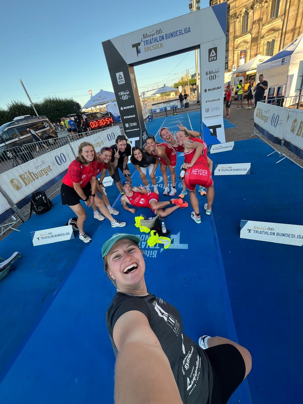 Am Ende des Wochenendes stand ein 9. Platz zu buche, mit dem wir alle mehr als einverstanden waren. Ich konnte mit Platz 16 mein bisher bestes Ergebnis in der 1. Triathlon Bundesliga erzielen, was meine Erwartungen an die Platzierung mehr als übertrafen. Das Beste dabei war aber der Moment, als ich Anna erzählte auf welchem Platz ich da gerade über die Linie gelaufen bin und wen ich im Zielsprint hinter mir gelassen habe. Sagen wir mal, es hat sie sehr gefreut. Naja lieferte auch ein super Rennen ab und konnte sich beim Laufen Platz 30 sichern. Anna und Pauline vervollständigen das Ergebnis auf den Plätzen 36 und 39.