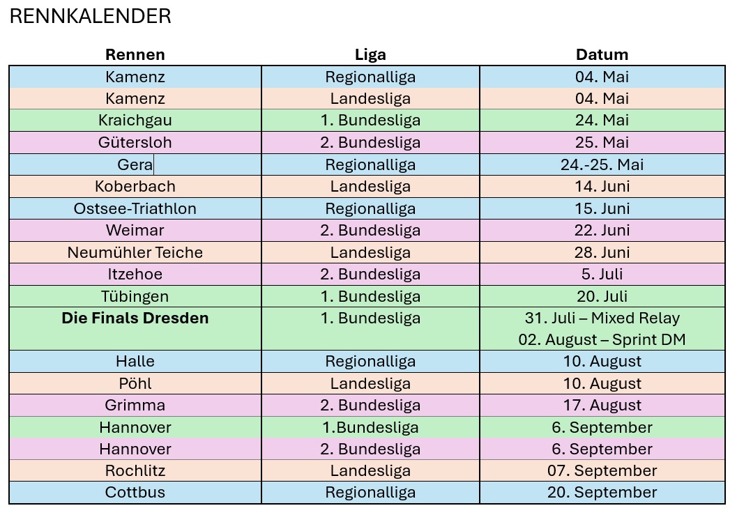 Für das Frauenteam stehen in diesem Jahr 10 Rennen verteilt auf die 1. und 2. Bundesliga an. Klares Highlight sind hierbei natürlich „Die Finals“ in Dresden. Aber es warten auch  2 weitere mitteldeutsche Rennen in Weimar und Grimma auf uns.